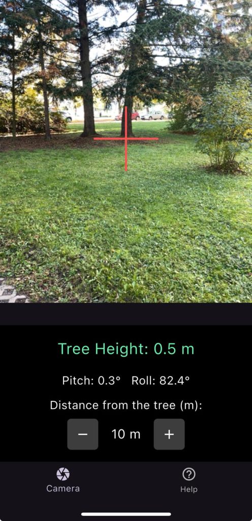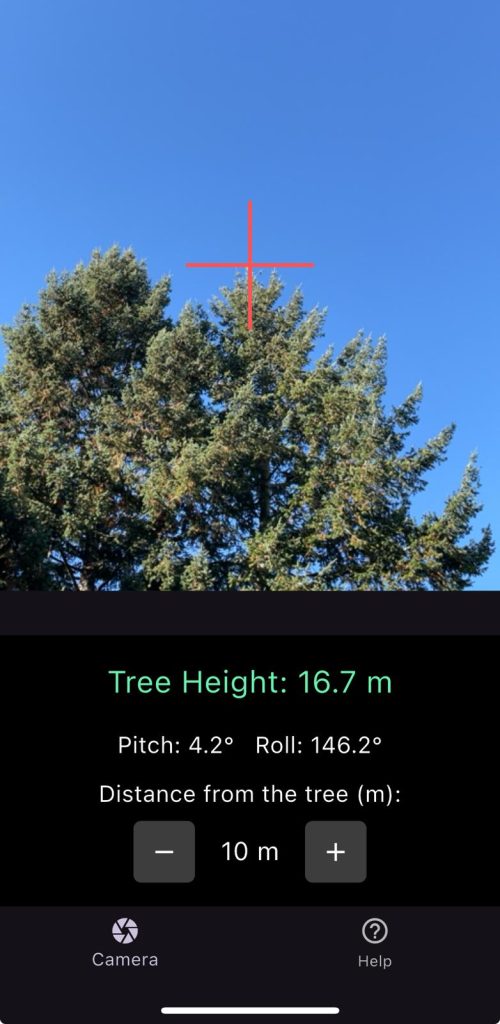 The app uses built-in IMU, gyroscope and camera sensors to estimate the vertical angle and distance to the tree top and base. By combining these measurements, it automatically calculates the total tree height without any external equipment or manual calculation.